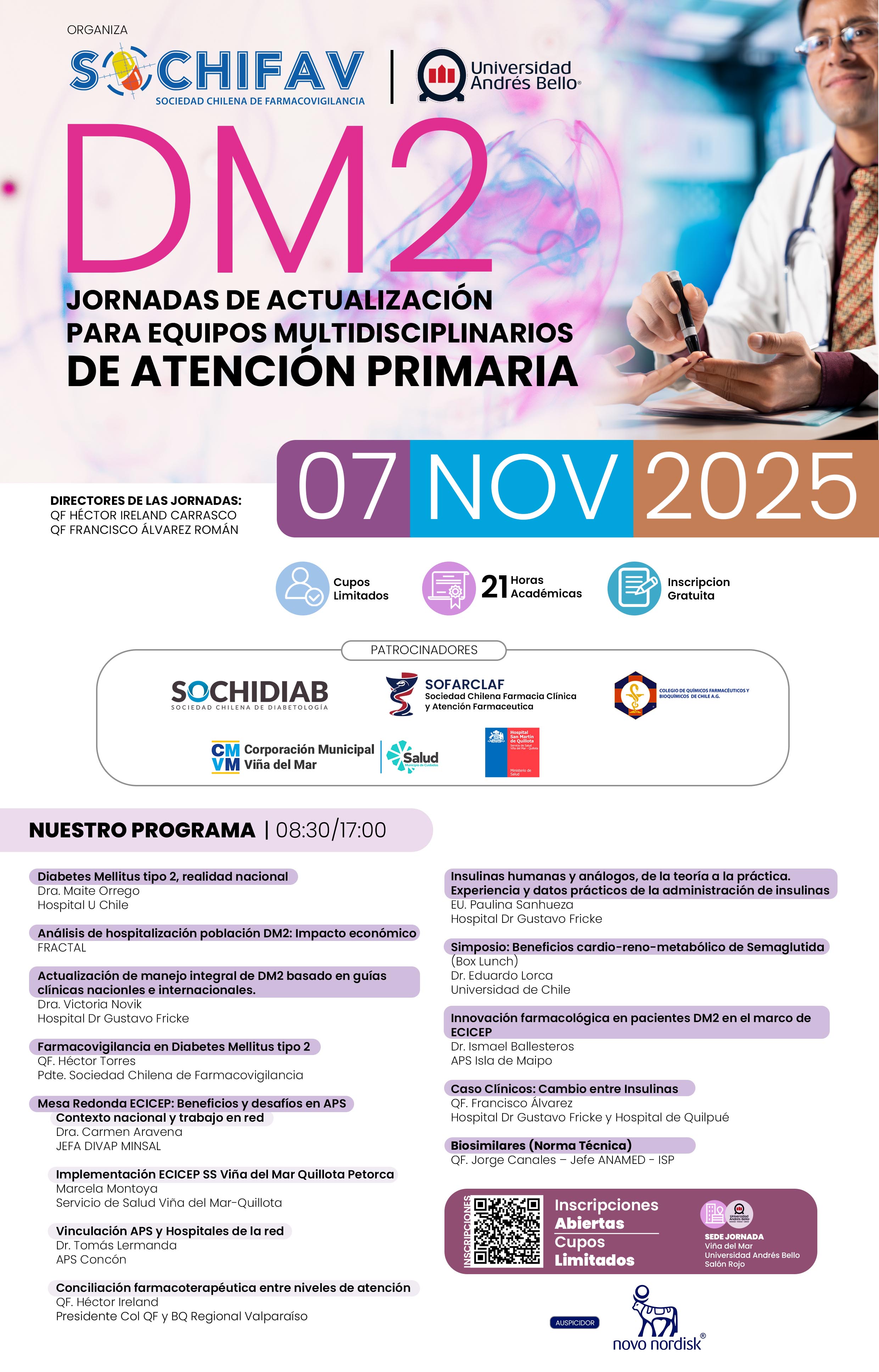 15:00 – 16:00 | INNOVACIÓN FARMACOLÓGICA EN PACIENTES DM2 EN EL MARCO DE ECICEP Dr. Ismael Vallesteros - APS Isla de Maipo |
